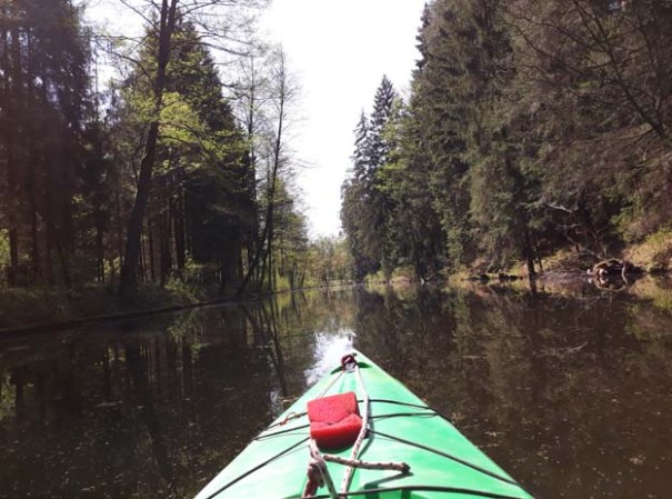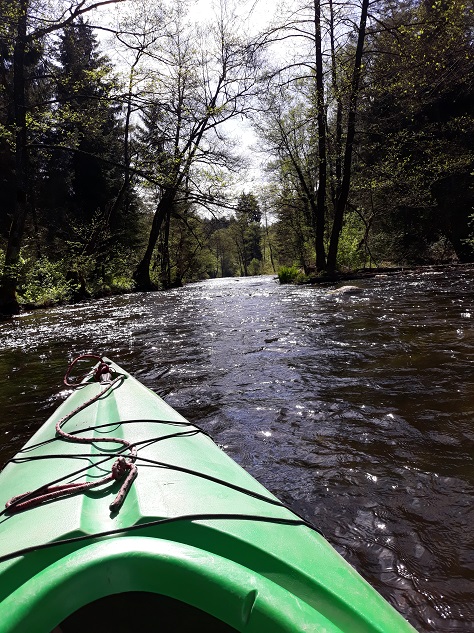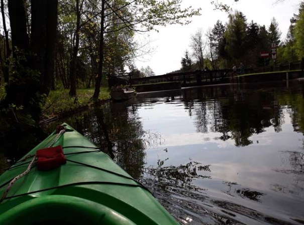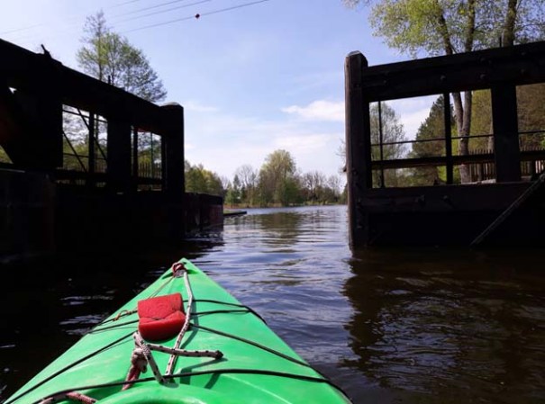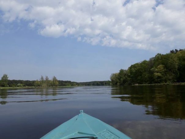 Rzeka coraz szersza, ma już pewnie ze 150 metrów. W końcu ostre zakole i… widać przystań. Koniec trasy. Jak zwykle: szybciej, niżby się chciało, choć tym razem Viator coś marudzi, że może i dobrze, bo jego siedzenie odwykłe od takiego wysiłku domaga się odpoczynku. Szkoda.