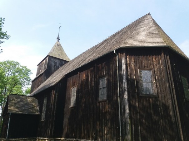 Ruszają przeto i już wkrótce definitywnie opuszczają Suwalszczyznę, sunąc wśród mazurskich moren i jezior. Rozum kazałby podróżować bez przystanków, aby dotrzeć na Łużyce o jakiejś rozsądnej godzinie, ale to nie dla Viatorostwa; serca gorejące zmuszają ich co i rusz do postoju. Pierwszy raz niemal natychmiast po przekroczeniu granicy obu krain – do 1939 roku granicy państwowej. Bo jak się nie zatrzymać i nie obejrzeć spokojnie z bliska malowniczego modrzewiowego kościółka w Wieliczkach? Ponoć najstarszej drewnianej świątyni na Mazurach.