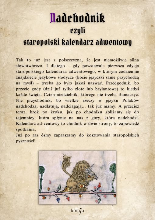 Nasza nowa autorka, Bożena Jakubowska, nadesłała kolejne staropolskie informacje przedświąteczne, a Joasia Rubinroth & Tanja Krüger, podarowały mi kalendarz adwentowy, a w nim codzienne niespodzianki, no i wreszcie ja sama też sobie ułożyłam jak co roku wieniec adwentowy, bo lubię wszystkie święta (tak, Halloween i walentynki też lubię!), więc mamy na dziś nieoczywiście oczywisty misz-masz przedświąteczny.