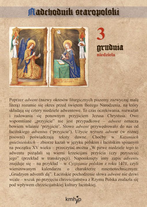 debiutuje u nas i od razu informuje, że jeśli mówiliśmy adwent, jak się mówi w Niemczech, a co z jest z łaciny zaczerpnięte i oznacza czekanie – Pan nadchodzi! – to nie, już wcale nie mówimy adwent jeno