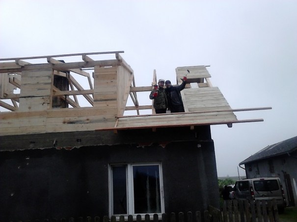 Unsere Freiwilligen haben das ganze Wochenende über in drei Dörfern gearbeitet, in drei Bauernhöfen, die bis dahin überhaupt keine Dächer hatten. Und sofort nach ihrer Ankunft in Stargard erklärten sie, sie würden sofort wieder in die Kaschubei fahren müssen, um den Geschädigten noch die Elektroleitungen und die Fußböden zu legen. Mit der Hoffnung, dass es diesen Familien, die nur eine Zuwendung für den Kauf von Brettern für das Dach und eventuell für einen neuen Heizofen erhalten hatten (es waren nicht alle), gelingen wird, Weihnachten im eigenen Haus zu verbringen.
