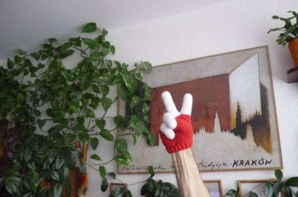 Zielona czapeczka w obronie puszczy… Rękawiczka biało-czerwona to przezorna mysl o nadchodzącej jesieni…