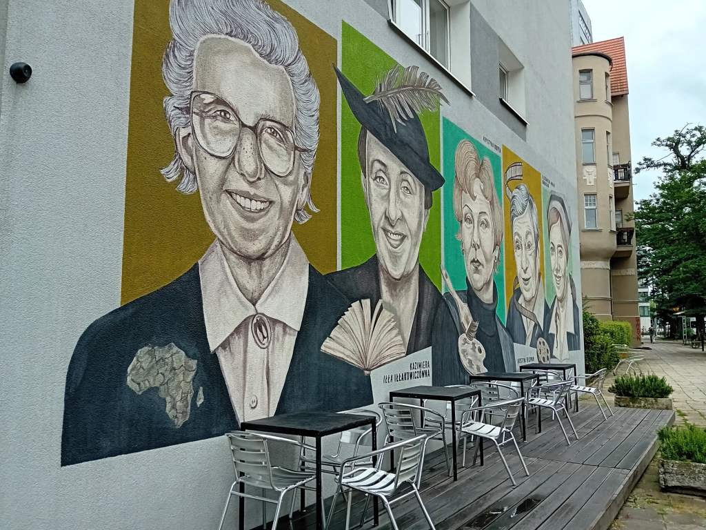 Kawałek dalej wśród innych poznanianek z Jeżyc znajduję jej wymuralowany portret.