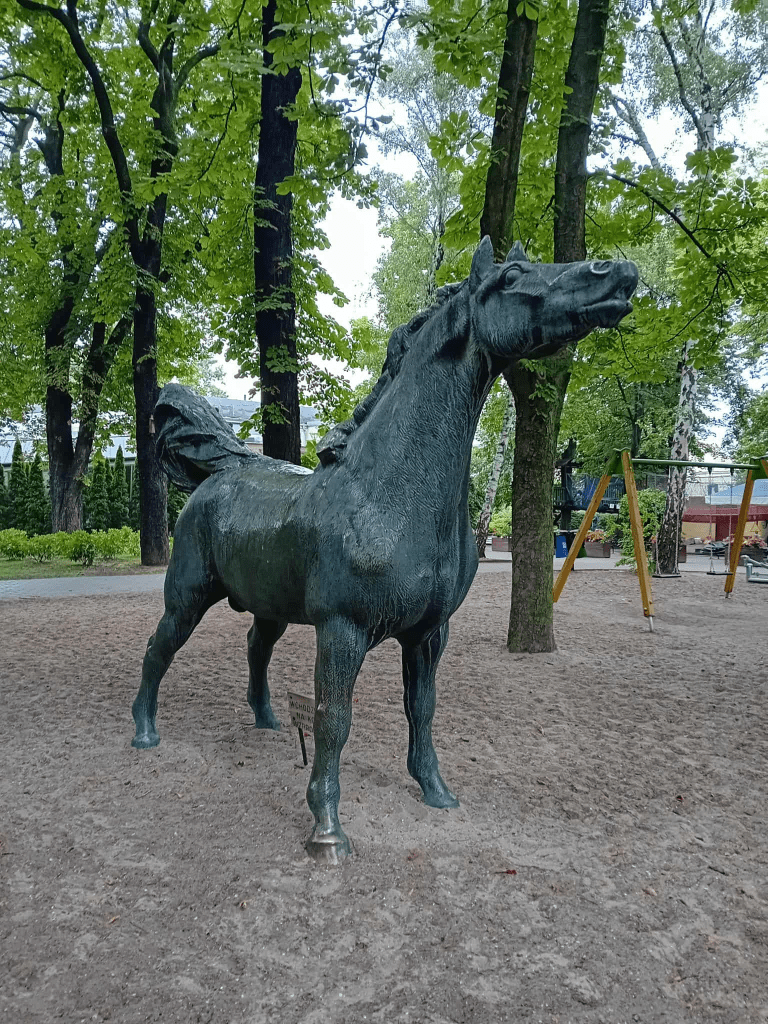 Lew autorstwa Augusta Gaula, poświęcony Robertowi Jaecklowi, to jedyna rzeźba na terenie Starego Zoo w Poznaniu, której historia jest tak dobrze udokumentowana. Pozostałe, choć bardziej rozpoznawalne, jak wilk czy koń, pozostają anonimowe, ich pochodzenie nie jest znane. Wilk, dynamiczny w formie, z wyszczerzonymi kłami i groźnym spojrzeniem, budzi respekt, a jednocześnie cieszy się ogromną sympatią najmłodszych. Każdy z nas choć raz na niego wsiadł i pozował do zdjęcia,