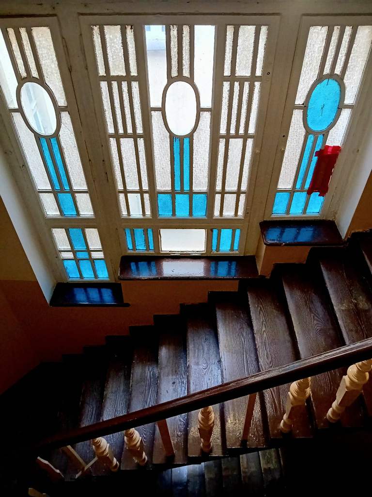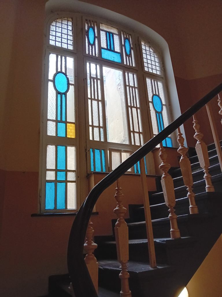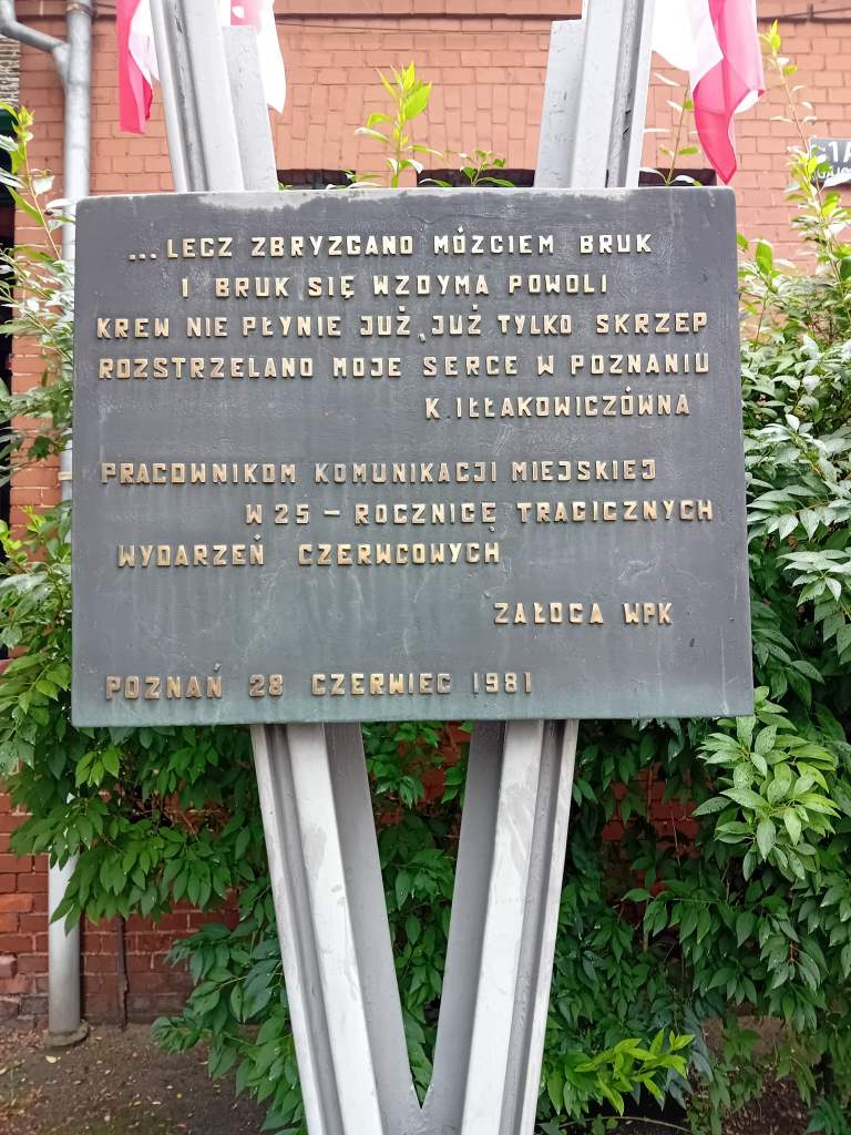 Nie doczytałam, że do mieszkania można wejść tylko po uprzednim się zgłoszeniu i tylko raz w miesiącu. Przed kamienicą na progu zapraszający napis Salve, więc weszłam. Zachwycona klatką schodową i niebieskim światłem wpadajacym przez niebieskie szybki podeszłam pod drzwi mieszkania poetki. Na skwerze przy dawnej zajezdni tramwajowej, widocznej z okien pokoju Iłłakowiczówny, znajduje się tablica upamiętniająca Czerwiec ’56 i fragment jej wiersza, wiersza manifestu o Poznańskim Powstaniu z1956 roku, Rozstrzelano moje serce…
