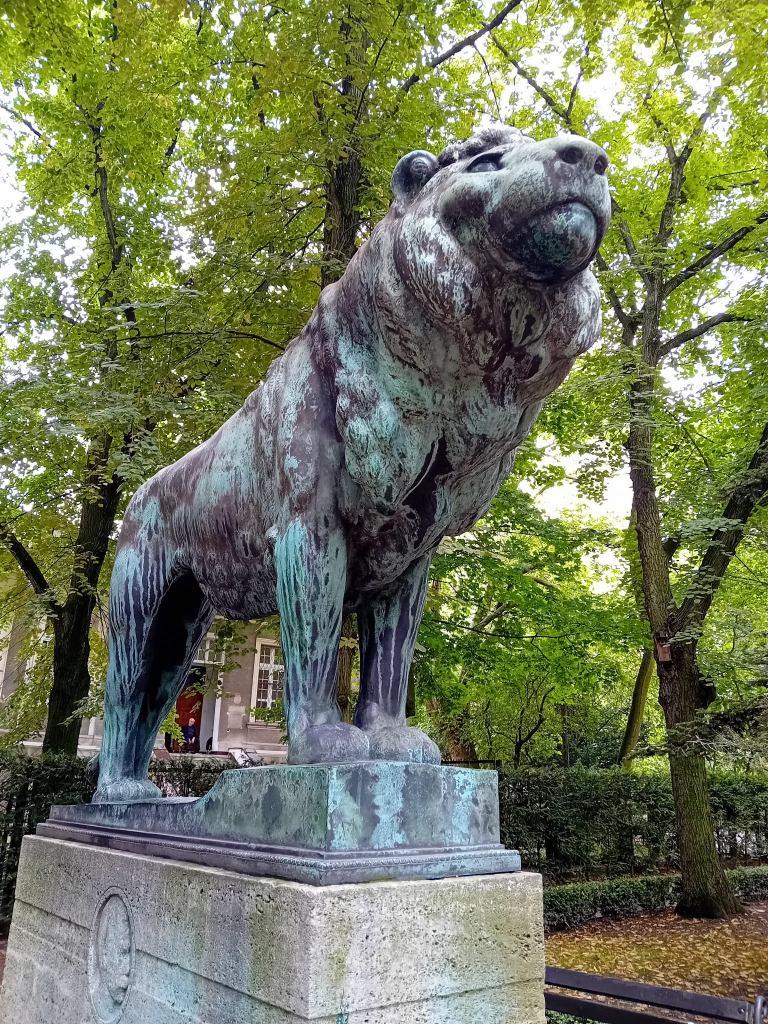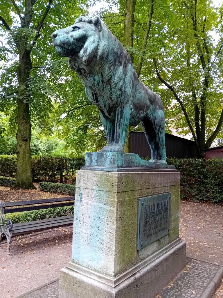 Bardzo podobny lew stoi przed Starą Galerią Narodową (Alte Nationalgalerie) w Berlinie. Na stronie Staatliche Museen zu Berlin czytam: