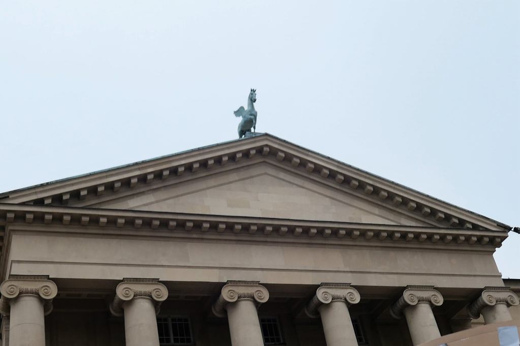 Pegaz pozostał niewzruszony na szczycie poniemieckiego budynku cesarskiej dzielnicy, lew i pantera także.