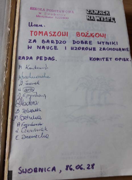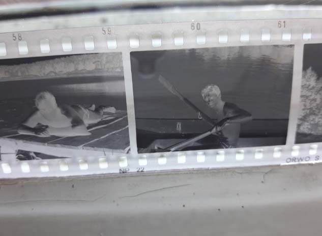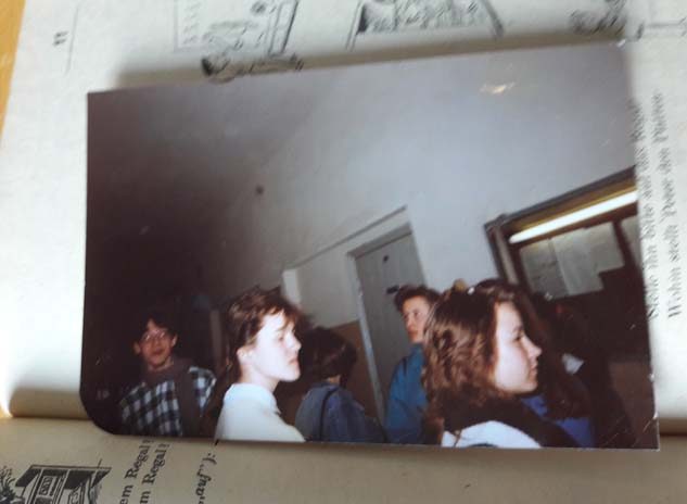 W książkę wetknięte kolorowe zdjęcie uczniów z lat 70. Nasze zdjęcie. Wszyscy przecież dzisiaj wyglądamy tak samo. To wtedy jedne z nas były brzydkie, inne ładne i ładnie ubrane. Dziś zdjęcie z lat 70 wykonane papierze Fujicolor, ale mimo to martwo szaro-bure, udowadnia, że wszyscy byliśmy tacy sami. Jest też kawałek kliszy filmowej, z enerdowskiej firmy ORWO, z pięcioma czarno-białymi zdjęciami: ktoś leży na brzuchu, podnosi głowę znad książki, patrzy w obiektyw; ktoś wiosłuje dwoma wiosłami; dom jednorodzinny otoczony płotem, za płotem dwa drzewa; dwie kobiety siedzą blisko siebie; ściana bloku mieszkalnego – widać tylko górne piętra na tle nieba.