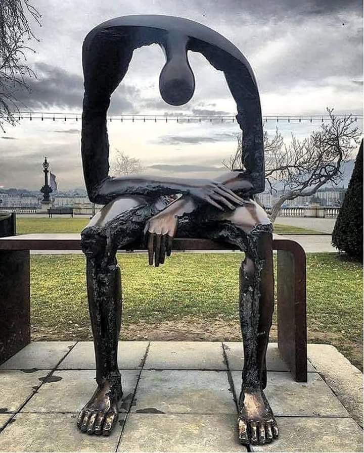 Mietek Węglewicz podrzucił zdjęcie jeziora, potem znalazłam w internecie rzeźbę dziwnego człowieka we mgle. Teraz wydaje mi się, że wcale tu nie ma żadnej mgły, ale nie bądźmy drobiazgowi. Z jakiegoś względu zapisałam sobie to zdjęcie jako: “dziwny człowiek we mgle”.