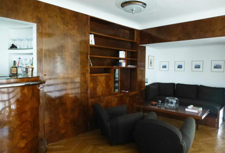 Jakie były dalsze losy atelier Tamary Łempickiej? Modernistyczna wizja wnętrza zaprojektowana przez artystów UAM odeszła razem ze swoją epoką, podobnie jak na dekady przygasła sława samej artystki. Przed wybuchem II wojny światowej Łempicka wyemigrowała do Stanów Zjednoczonych, ale od lat pięćdziesiątych sporadycznie odwiedzała paryską pracownię. Wystrój uległ jednak radykalnemu przeobrażeniu. W 1956 roku artykuł w ilustrowanym piśmie Art et Décoration nazwał mieszkanie „eklektycznym”, co wskazywało na zmianę stylu. Na gładkich, niegdyś surowych ścianach, pojawiły się weneckie stiuki, a chrom, nikiel i szkło awangardowych mebli zastąpiły rokokowe stoły, intarsjowane sekretarzyki i fotele z czasów Drugiego Cesarstwa. Na miejscu konstrukcji z cynku braci Martelów stanęły rzeźby sakralne. Owa zmiana decorum odzwierciedlała ewolucję gustów i zainteresowań artystki oraz przemijanie mód i tendencji w sztuce użytkowej. Obecnie jesteśmy świadkami wielkiego powrotu do funkcjonalnego modernizmu i przedwojenne atelier Tamary Łempickiej – dzieło najświetniejszych przedstawicieli tego stylu – ponownie inspiruje. Niestety, jako własność prywatna nie jest udostępniane do zwiedzania. Pozostały zdjęcia…