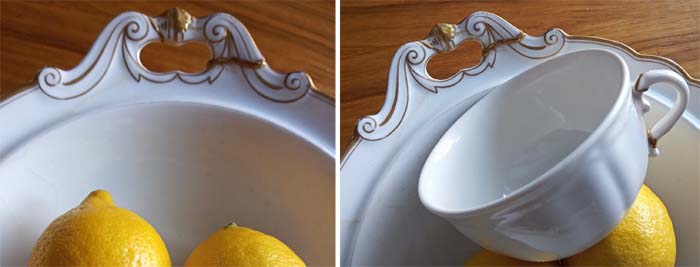 Kiedy ją kupowałam w sklepiku ze starociami, porcelanowa patera była stara, ale cała. Nim doniosłam ją do domu, uszko plastikowej torby urwało się ni stąd ni zowąd, torba spadła na chodnik i patera się nadtłukła. Do domu doniosłam potłuczony antyk w porwanej torbie. Nie byłam szczęśliwa, nie znoszę tłuc i niszczyć, nie lubię nadtłuczonych filiżanek i talerzy i zwykle je wyrzucam, żeby o nich szybko zapomnieć. Patera z nadtłuczonym brzegiem stała się smutnym wspomnieniem tamtej chwili satysfakcji, kiedy wypatrzyłam ją pośród wielu innych przedmiotów.