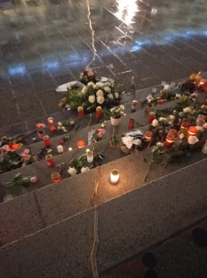 Gdy moja Siostra powiedziała, że marzy o Kintsugi, uświadomiłam sobie, że właśnie niedawno widziałam takie złote sklejenie, takie, które nie udaje, że nie ma rany, tylko przeciwnie – właśnie ją podkreśla. Zdjęcie zrobił Konrad, pewnego grudniowego wieczora w Berlinie. Poprzedniego dnia miasto przypomniało rocznicę ataku terrorystycznego, jednego z tych, jakie przed kilku laty wstrząsały Europą. Paryż, Marsylia, Kopenhaga, Londyn, Berlin, Sztokholm, Bruksela, Nicea.