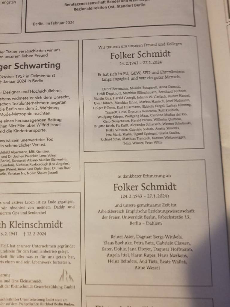 Człowiek wielkiego serca i wielkich zasług. Najbliżsi zawsze mogli na niego liczyć. W trudnych czasach zdobył niezbędne wykształcenie. Wkrótce założył rodzinę i wychował dwoje dzieci. Doczekał się trzech wnuków (czwarty, Odo, przyszedł na świat w dwa dni po jego śmierci), które wszystkie tu są z nami i żegnają zmarłego. Przez wiele lat pracował na Wolnym Uniwersytecie, gdzie przeszedł wszystkie szczeble awansu zawodowego. Wierny członek i wyborca SPD. Na emeryturze przez wiele lat czynnie zaangażowany w towarzystwie Partnerstwo Miast Szczecin – Kreuzberg/Friedrichshain, gdzie perfekcyjnie pełnił funkcję skarbnika.