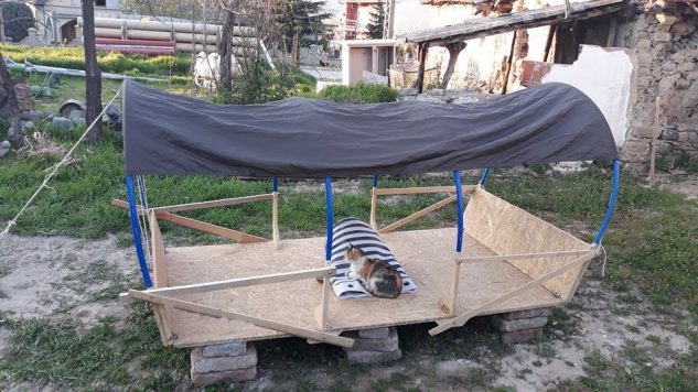 Zbliżał się wieczór. Wiatr powoli przygasał. Pakowaliśmy nasz dobytek na jedyną łódź, jaka została w porcie. Była to szalupa okrętowa, znaleziona przez jakiś statek na pełnym morzu, prawdopodobnie zgubiona przez inny statek. Trafiła do Gdańska, a stamtąd zbiegiem okoliczności – do mariny „Wdzydzki Kąt”. Jako masztu użyliśmy żerdki sosnowej leżącej za śmietnikiem, żagiel lugrowy zrobiłem z resztek podartego foka. Wiedząc, że w tych warunkach pogodowych nie mamy szans dopłynąć do naszego ulubionego miejsca na wyspie, poprosiłem Ewę Marię by czuwała nad wiatrami i w razie czego czyniła, co do niej należy. Z portu wypłynęliśmy „na śrubkę”, a jak w końcu chwyciliśmy wiatr, zaczęła się ruletka – dopłyniemy czy nie. I prawie się udało, gdyby nie to, że na drodze do naszej zatoczki stanęło przewrócone drzewo wystające z brzegu. Widać było, że tego drzewa nie ominiemy, zabrakło wiatru, choć niewiele brakowało. I wtedy przyszedł niespodziewany lekki powiew wiatru, takie muśnięcie, które delikatnie przeniosło nas do naszej cichej zatoczki. Czy Ewa Maria miała z tym coś wspólnego czy też był to szczęśliwy zbieg okoliczności?