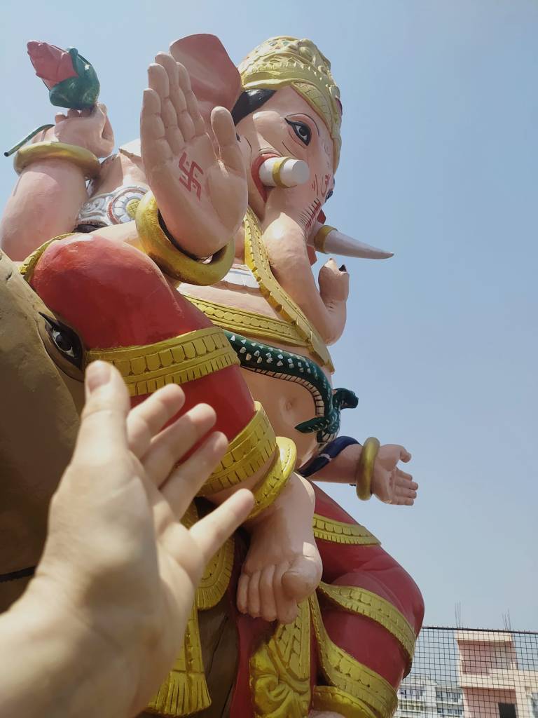EMS: Zachorowałam. Jak prawdziwy dyrektor, podczas imprezy, ale gdy skończyła się już część oficjalna. Trzeba było do szpitala. JT: Do jakich bogów mamy się tu pomodlić za ciebie? Mamy tu dużo Buddy, mamy tu Ganesze, no i mamy Jezuski. EMS: Ganesh. Bardzo go lubię JT: No, dyrektorze, na razie Buddę ci przesyłamy, bo dzisiaj byłyśmy u Buddy, a nie u Ganeszy, i tam złożyłyśmy kwiatka. Jest taki śliczny.