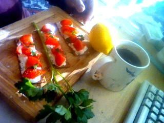 Natychmiast po powrocie znad jeziora, gdzie złapałem parę płotek i karasi na jutrzejszą zupę wegierską halasle, rzuciłem się w wir robót kuchennych: placek drożdżowy z owocami, kapuśniak po krzyżacku, łosoś atlantycki saute, ser harzeński po grecku, ogórki na małosolne nastawić, wystarczy?