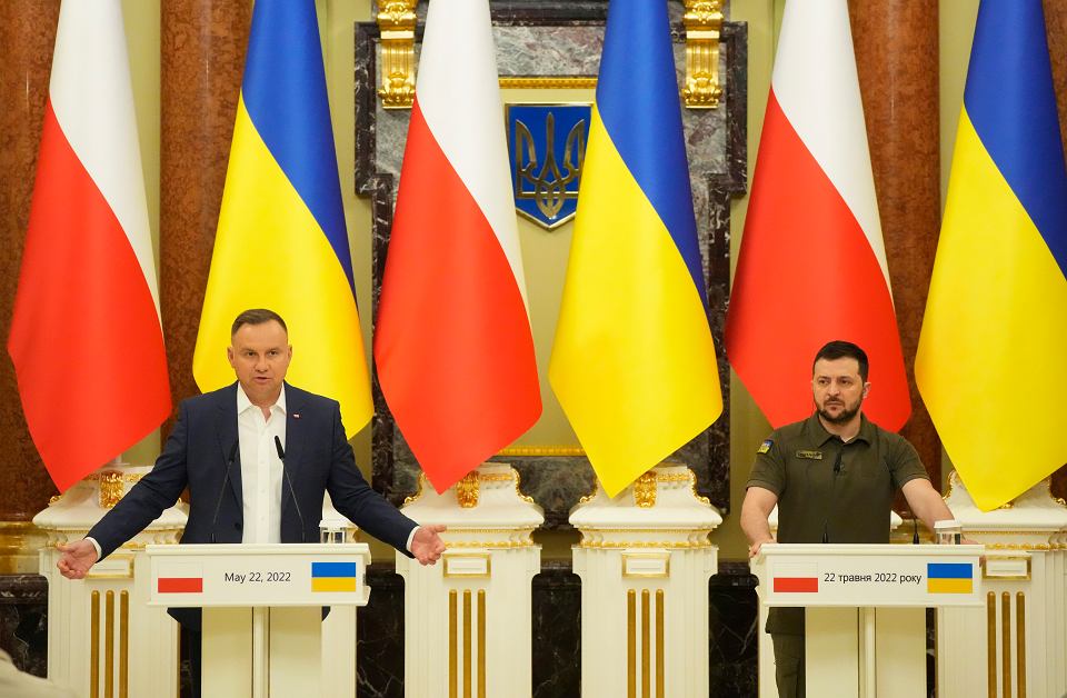 22.05.2022, Kijów, wspólna konferencja prasowa Andrzeja Dudy i Wołodymyra Zełenskiego. (Fot. Efrem Lukatsky / AP Photo)