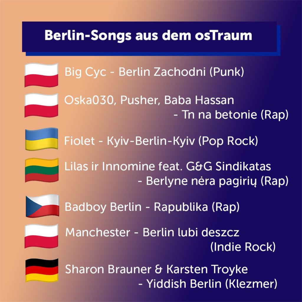 🎤🐻🎧 Berlin hat seit dem 20. Jahrhundert eine starke Anziehungskraft für Künstlerinnen aus dem osTraum. Die Stadt ist ein kultureller Schmelztiegel und inspiriert Musikerinnen. Berlin gilt als Kulturhauptstadt Deutschlands und womöglich Europas, was in 7 ausgewählten Liedern aus dem osTraum reflektiert wird.