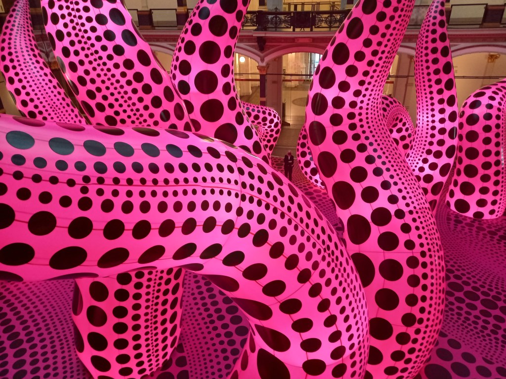 Pierwsze umieściłam na Facebooku jeszcze tego samego dnia, zaraz po nagrywaniu sceny na scenie w Ufa Fabrik. Zebrało ponad 220 lajków i 75 komentarzy, trzy razy zostało zszerowane, i tam, tak mi powiedziano, też zebrało masę reakcji. Oczywiście słowo “masa” jest względne. Gdybym była szafiarką albo haulerką, gdybym zajmowała się włosingiem, albo była Koreanką, która odkrywa Polskę, słowo “masa” oznaczałoby na przykład 500 tysięcy reakcji, ale ja mam 71 lat, na co dzień piszę nieciekawe rzeczy o nieciekawych sprawach, zamieszczam zdjęcia nieciekawych osób (w tym, rzadko, własne) i z reguły zbieram 10, może 20, może 50 reakcji. Deszcz lajków i emojek, które zebrało to “czerwone” zdjęcie przeszedł normalne oczekiwania normalnej starszej pani.