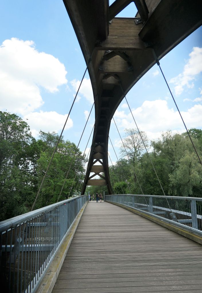 Wyspowa ścieżka prowadzi przez obszar w dużej mierze zachowany jeszcze w pierwotnym stanie, obszar często zalewany wiosną i jesienią, z nierównym brzegiem, poprzecinanym cyplami, wbijającymi się w rzekę. Ścieżka w pewnym momencie dochodzi do ukształtowanej już ręką architekta promenady i otwartego w roku 2003 tzw. Ogrodu Europejskiego. Ogród opowiada o rzece, o jej źródle, biegu, życiu, pracy… Aranżacja ogrodu nie w każdym miejscu mnie przekonywała. Ze ścieżką wśród sitowia nie może się równać. Plac zabaw bardzo ciekawy, prawie pusty. Obok duży plac z dmuchaną zjeżdżalnią dla dzieci, wata cukrowa, piwo i jakieś kiełbaski, a do tego z głośników Cała naprzód Heleny Fischer (Volle Kraft voraus). Gdy opuszczałam wyspę, zeszłam jeszcze raz do ścieżki, tej dzikiej, wśród trzcin i sitowia. Zaczęła kukać kukułka. Za mąż już nie wyjdę, skorzystałam więc z tej drugiej wróżby, wróżącej długie życie, bo kukułka nie przestawała kukać.