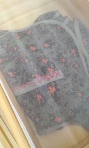 “Fartuszek“, napisała Kasia, “był obowiązkowym elementem stroju dziewczynki w komunistycznym przedszkolu w Polsce. Miał naszywkę z imieniem i kieszeń, w której można było trzymać chusteczkę do nosa, lub schować drugie śniadanie. Mój fartuszek uszyła mi mama. Miałam trzy lata, mieszkałyśmy w Poznaniu, mama była studentką szkoły sztuk pięknych i nie miała pieniędzy. Uszyła więc fartuszek ze swojej ślubnej sukni. Brała ślub, gdy była już w czwartym miesiącu ciąży, a suknię ślubną uszyła sobie z zasłony, która wisiała w mieszkaniu jej mamy, czyli mojej babci. W roku 1980 moja rodzina uciekła do Niemiec Zachodnich Fiatem Uno, a ja zostałam schowana w bagażniku. Mama zabrała wtedy również mój fartuszek, ale nie nosiłam go już więcej, bo w Berlinie w przedszkolu dzieci mogły nosić, co chciały. A mimo to nie mogę się rozstać z moim fartuszkiem.”