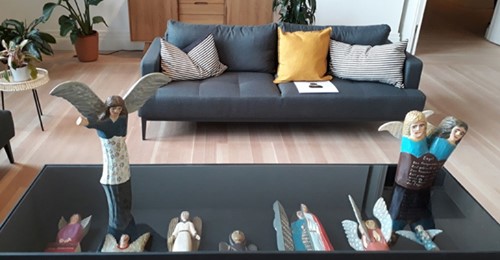 W salonie co tydzień inny zaproszony artysta prezentował… coś. Polska dziennikarka i kolekcjonerka sztuki, Urszula Usakowska-Wolff, prezentowała swoje (i męża) zbiory polskiej sztuki ludowej (maleńki fragment) – zdjęcie Urszula