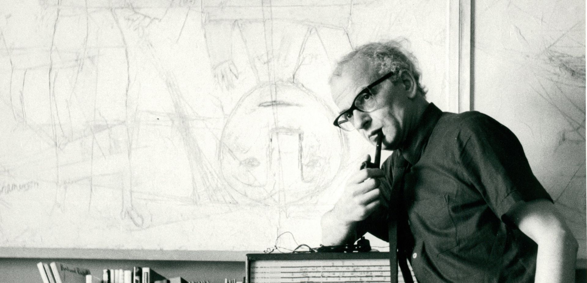 Themerson na tle obrazu swojej żony, Franciszki.
