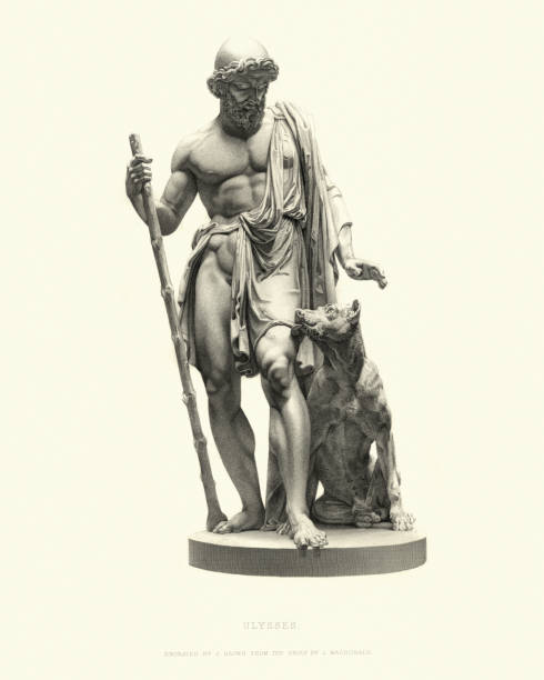 Vintage engraving of Fine Art Statue, Ulysses, after L Macdonald, 1855. A legendary Greek king of Ithaca and the hero of Homer’s epic poem the Odyssey.Od góry do dołu, od lewej do prawej: Dariusz Bogucki, Don Kichot, markiz Bonifazio D’Oria, Odyseusz, Ahaswer, czyli Żyd Wieczny Tułacz