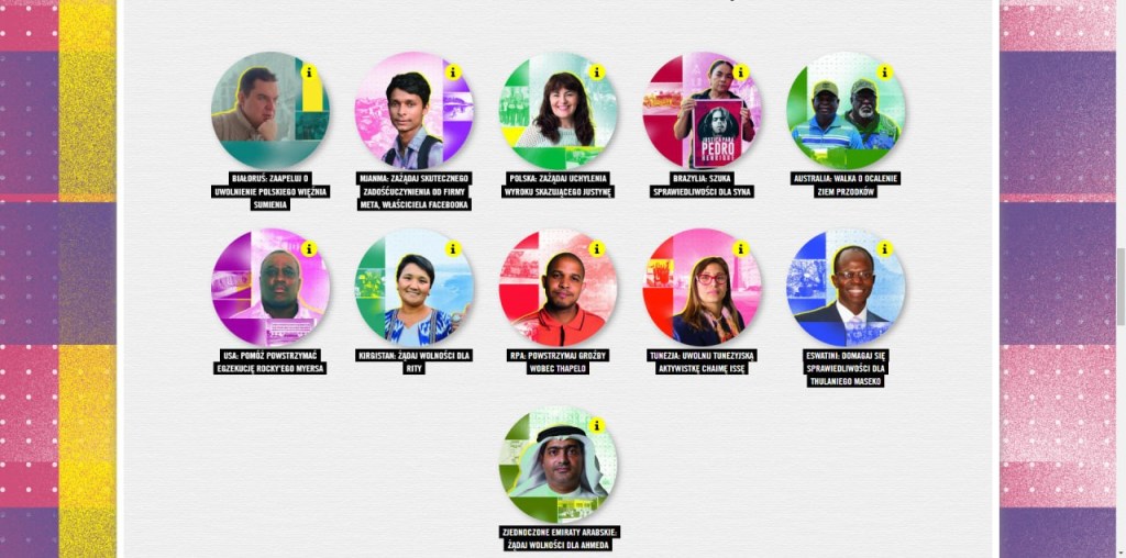 Będziemy pisać także listy w obronie bohaterów z Polski Justyny Wydrzyńskiej, skazanej za pomoc w dostępie do bezpiecznej aborcji kobiecie będącej w przemocowym związku oraz Andrzeja Poczobuta, polsko-białoruskiego dziennikarza, skazanego na osiem lat kolonii karnej za wyrażanie swoich poglądów.