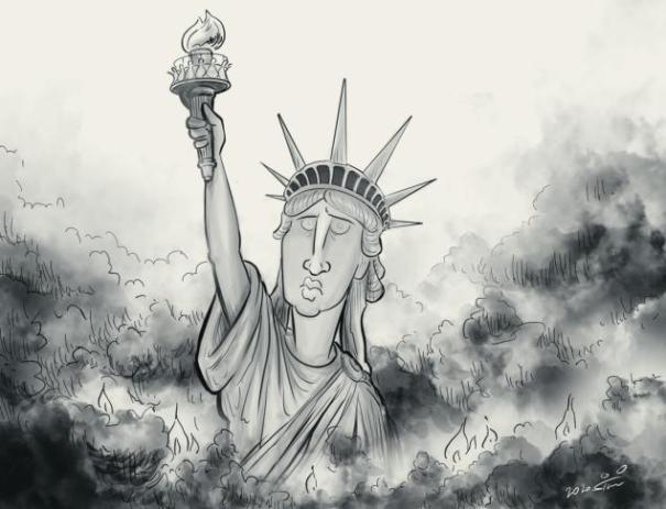 Arkadiusz Łuba napisał jako kometarz: wrapped in smoke, can democracy breathe? – where is the world going?! (cartoon from Sinisa Pismestrovic, in: “Süddeutsche Zeitung” 02.06.2020, p. 4) – more