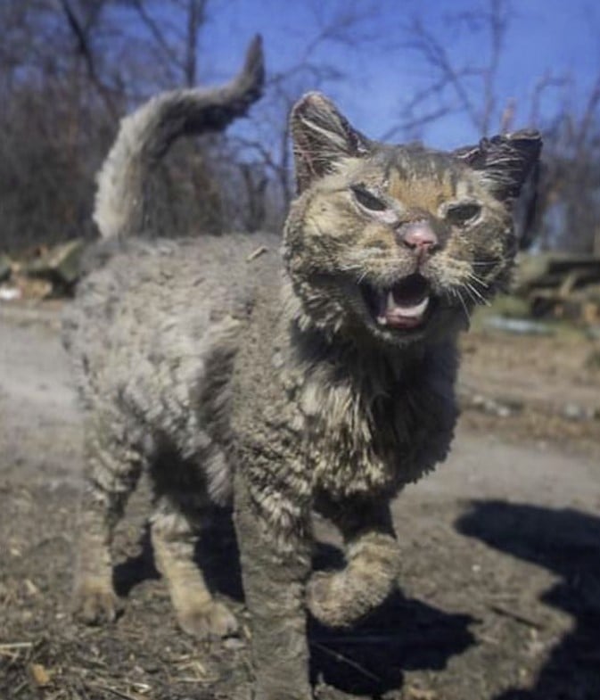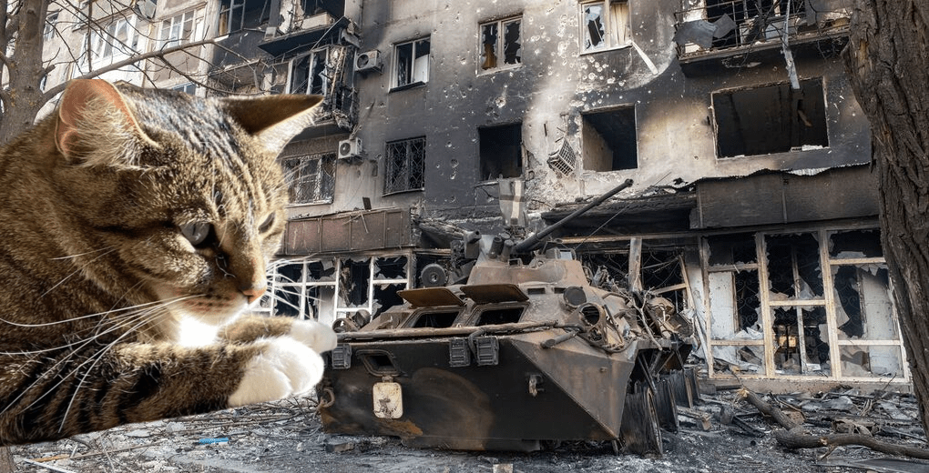 Ja, du russischer Troll, so sehen jetzt die süßen Katzen-Bilder aus, wenn sie Bucha oder Mariupol als Hintergrund haben werden! So oder viel viel schlimmer!