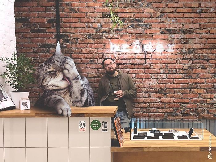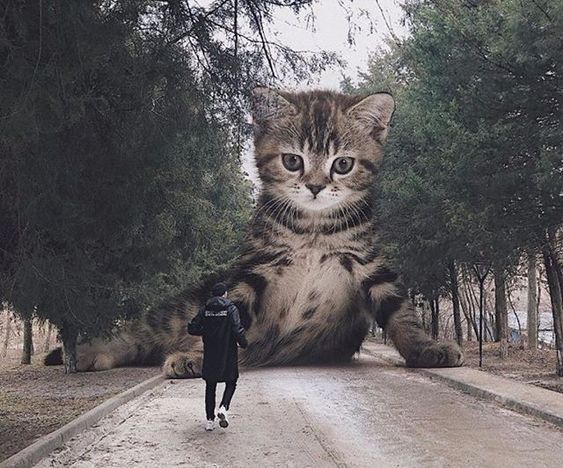 Wie würde die Welt aussehen, fragt sich eine Journalistin, wenn sie von Katzen geführt würde? Eine lustige und faszinierende Fantasie, die in den kuriosen fotografischen Schöpfungen des russischen Künstlers Andrey Scherbak eine Antwort findet, der auf seinem Instagram Profil mehr als 150 Bilder von über 3 Meter hohen Katzen hochgeladen hat, in denen die heute winzige Gestalt des Menschen nichts anderes tun kann, als sich an die neuen Meister des Planeten Erde anzupassen. Und in gewisser Weise könnte es auch die beste Lösung für die Zukunft unserer Welt sein!