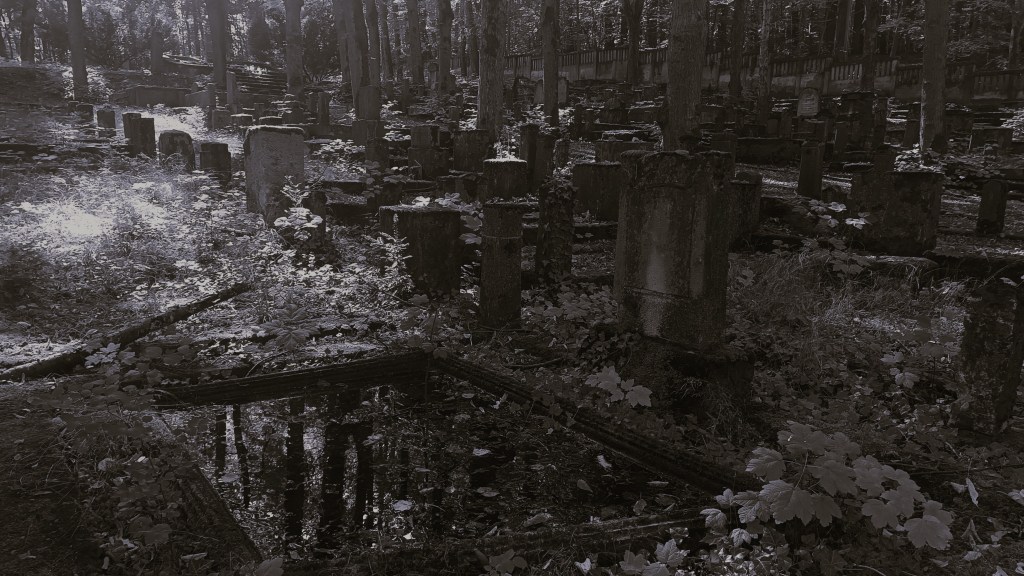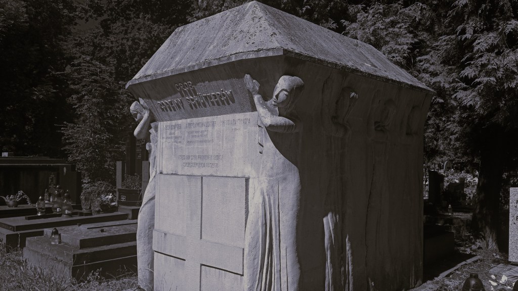 Może to karne posłuszeństwo temu marszałkowskiemu “ja was przepraszam panowie”? A może ten jednak pancerny całun niepamięci, jak ten spoczywający na niepozornym grobie wypisanym w całości po niemiecku. Na tym bastionie polskości, gdzie widziałam perfekcyjnie przypadkowego starszego pana składającego kwiaty pod Matejko. Tam, tu, w długim cieniu “przechodniu powiedz ojczyźnie iż wierni jej prawom tu spoczywamy”, natykam się na FRIEDE SEINER ASCHE. Część mnie chce wierzyć w etos obywatelski, etos tej efemerycznej solidarności mieszczańskiej, lecz patrząc na stan pomnika, bardziej prawdopodobne jest, że niczym piaski przelał się przez palce polskiej administracji. Któż to wie, zapewne archiwista cmentarny, jeżeli ktoś czuwa na tym posterunku.