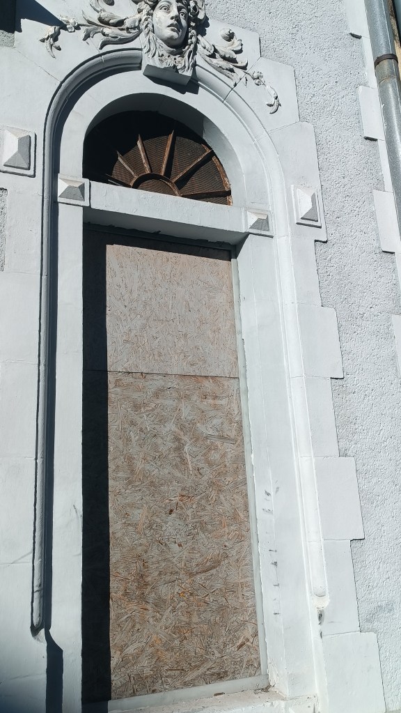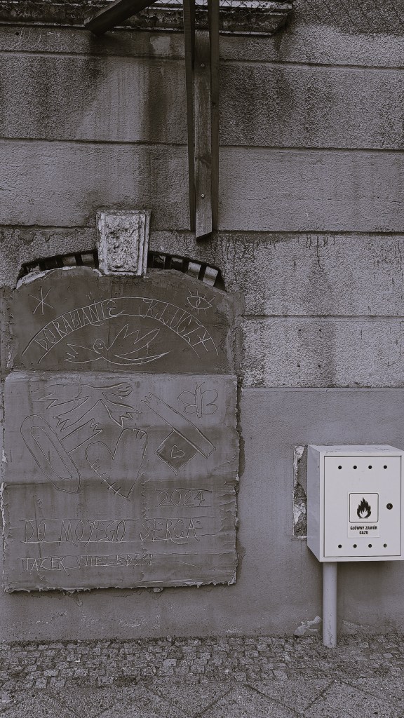 Przygodny epigraf na przeznaczonej do rozbiórki kamienicy, gdańskie Dolne Miasto
