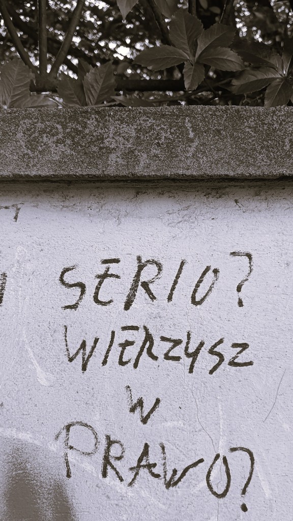 Tragikomedia sytuacji umieściła się w tym, że korzystałam praktycznie z jednego argumentu, jednym ostrzem patrosząc co rusz bardziej skomplikowane konstrukcje teorii i przewidywań, działań i przeciwdziałań. Trzeba kodyfikować, trzeba betonować co się da, mówi, w ten sposób, gdy nadejdą, będzie im trudniej, będą zasieki prawne pozostawione, aby się na nie nabili. Zawsze więcej pracy leży w zniesieniu czegoś, niż tego nie zrobieniu. I wszystko to ładne, i piękne, i szyte na miarę naszych karkołomnych realiów, lecz oto proponuje mój kij w szprychy. Majestat prawa jest wart dokładnie tyle, ile (pewni, niektórzy) ludzie się nawzajem umówią, że jest.