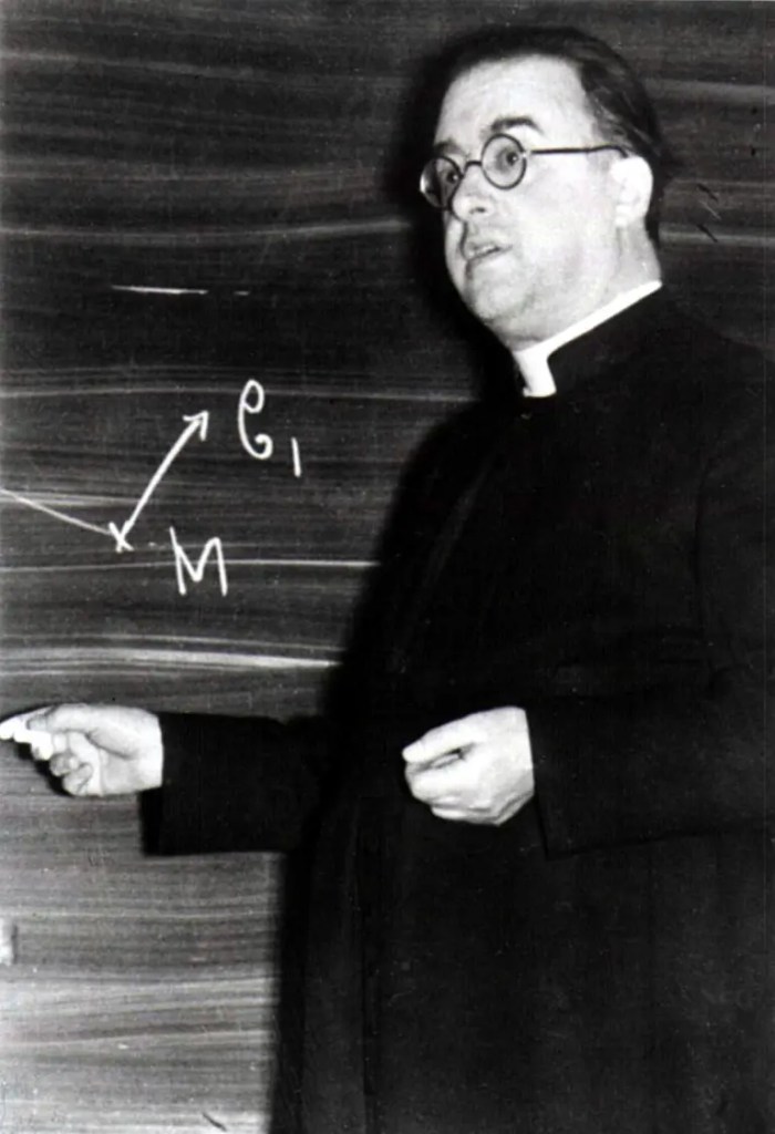 In 1927, Georges Lemaître became the very first person to put these pieces of information together, recognizing that the Universe today is expanding, and that if things are getting farther apart and less dense today, then they must have been closer together and denser in the past. Extrapolating this back all the way to its logical conclusion, he deduced that the Universe must have expanded to its present state from a single point-of-origin, which he called either the “cosmic egg” or the “primeval atom.”