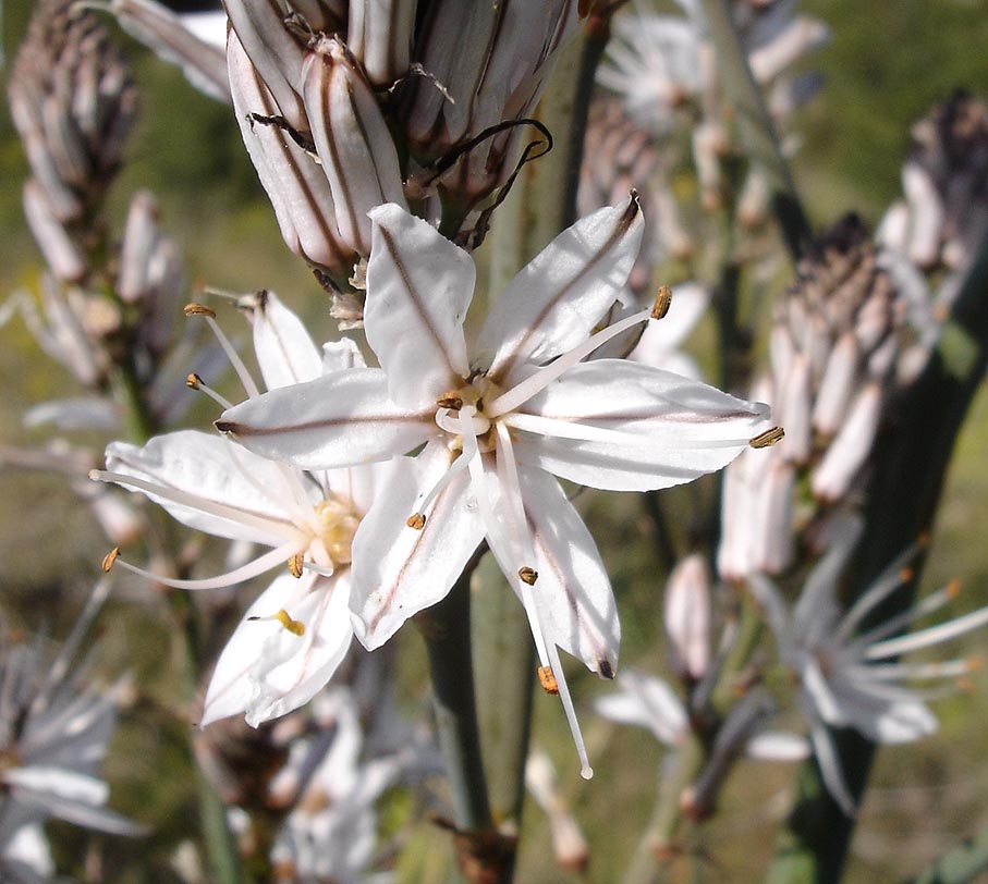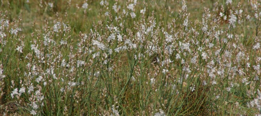 O ile topola nie budzi w nas specjalnego zaciekawienia, o tyle asfodele owszem. Są to piękne białe kwiaty, zwane złotogłowiem lub, po francusku, berłem królewskim (le bâton royal).