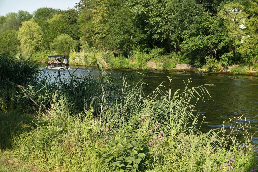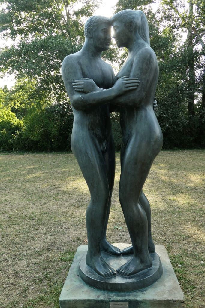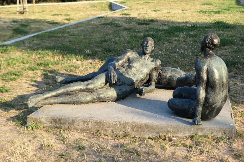 Raz w tygodniu wybieram się na wycieczkę w ramach 9-Euro-Ticket, taki mam plan. Niestety plan powstał trochę późno, ale odkąd nie planuję wycieczek dalekich, które pozostają tylko w planach, jeżdżę do miejsc bliskich i bliższych. Niedawno wybór padł na stolicę Brandenburgii. Miasto znane z pałaców, parków ogrodów i konferencji. Namówiła mnie Ewa, opowiadając o swojej wycieczce promem do Kladow. Też chciałam nad wodę. No i pojechałam na wyspę pełną kwiatowych zagonów, rozłożystych drzew, alejek, pergoli i innych wodno-ogrodowych atrakcji. Dużo nagich ciał w brązie, nie tym słonecznym, lecz metalowym. Nad wodą można dosiąść łabędzia lub flaminga i opłynąć wyspę dookoła. Na spacer się nadaje, mało chodzenia, dużo siedzenia. Dużo wolnych ławek do odpoczynku i przeróżnych roślin do oglądania – kwitnących, pachnących, dających cień, wabiących motyle, trzmiele, pszczoły.