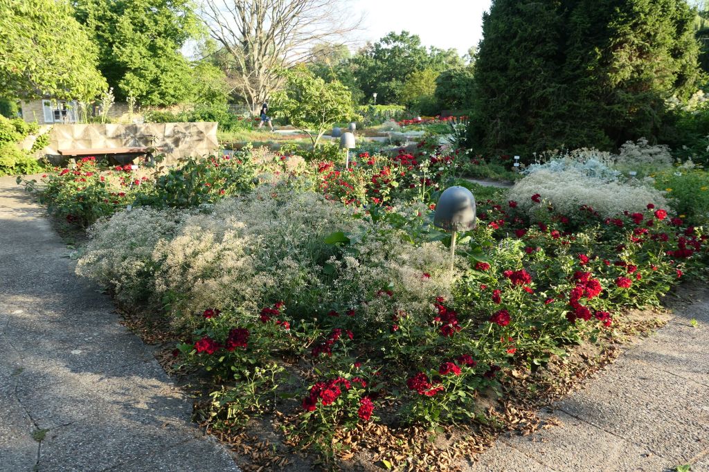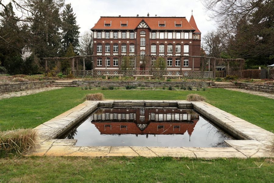 Ogród, do którego weszliśmy, solidnie już okrojony, należał do dawnej uczelni ogrodniczej, której początki sięgają roku 1824. Königliche Gärtner Lehranstalt założona została przez prekursora sztuki ogrodniczej, Petera Josepha Lenné, w Poczdamie. Na początku XX wieku przeniesiona została do Dahlem w Berlinie. Na 6,5 hektarach założono ogrody warzywne, sady, szklarnie, ogrody różane i bylinowe. W roku 1903 powstały budynki, w dużej części zachowane do dzisiaj. W głównym budynku mieści się wydział technologii żywienia i chemii spożywczej Uniwersytetu Technicznego (Technische Universität).