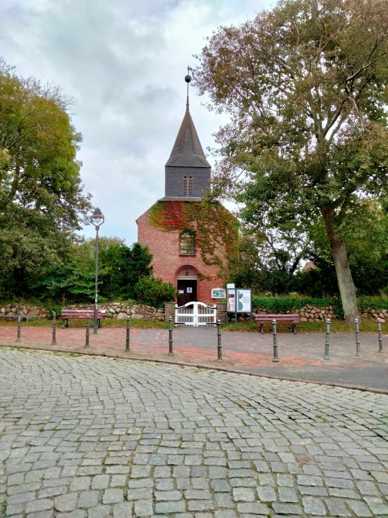 Koło kościoła stary cmentarz, pełen gęstych żywopłotów i kwiatów. Na starych kamiennych tablicach teksty o dzielnych kapitanach okrętów.