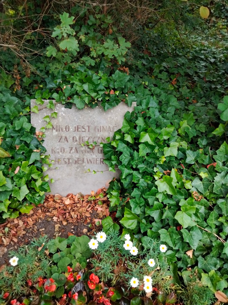 Stoję już przed kościołem, gdy pojawia się miła starsza pani i pyta, czy potrzebuję pomocy? Mówię, że nie, że byłam na cmentarzu, bardzo mi się podoba, teraz zamierzam odwiedzić groby wojenne, a potem pójdę do punków. Zaprowadzę panią, mówi pani, nasze groby wojenne nie tak łatwo znaleźć. Kawałek dalej nowy cmentarz, wchodzimy i po lewej zatrzymujemy się przed kwaterą grobów wojennych.
