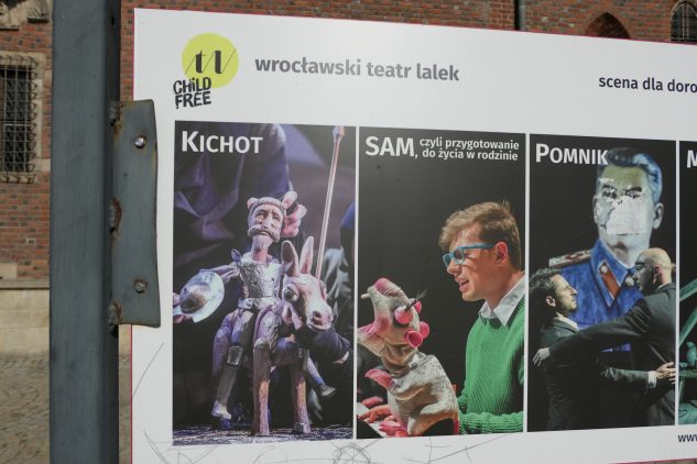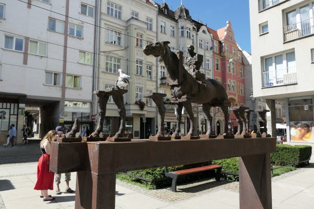 Przy ustawianiu rzeźby operator dźwigu opuścił zwierzę z dość dużej wysokości. Koń ponownie połamał nogi. Artysta uczynił z tego sztukę i na rdzawym postumencie stąpa koń, niecały jeździec i konia nogi. Wypisz wymaluj Don Kichot, niecały. Również niecały Don Kichot, bo tylko sam Kichot bez Dona pojawił się we wrocławskim teatrze lalkowym. Widziałam na rynku plakaty.