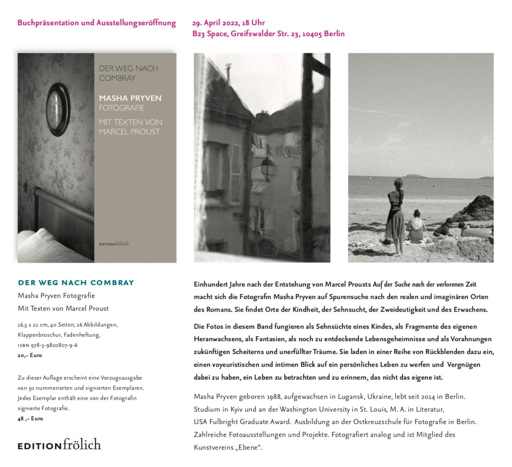 Ich will euch herzlich zur Präsentation meines ersten Fotobuches einladen. Es heißt „Der Weg nach Combray”. Prousts Roman Auf die Suche nach der verlorenenen Zeit hat mich vor zwei Jahren zutiefst beeindruckt und bewegt, selber auf die Suche zu gehen.