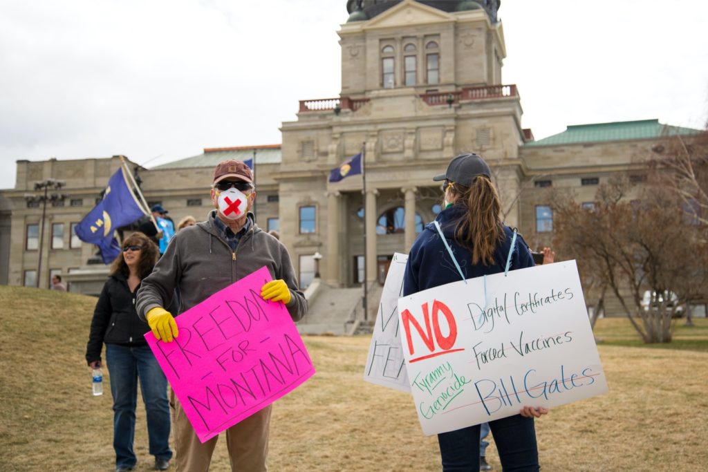 Protesty antyszczepionkowców w Montanie, w kwietniu 2020 r.