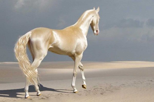 Akhal-Teke, Pferderasse aus Asien; man sagt, es ist das schönste Pferd der Welt und es gibt in der ganzen Welt nur 1250 davon. In China wurden sie Engelpferde genannt.