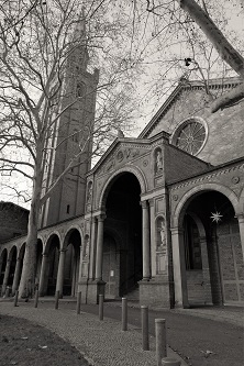 Gimazjum, a teraz plac zabaw od północnej strony sąsiaduje z cmentarzem przy kościele pod wezwaniem św. Jana Chrzciciela. Jest to jeden z czterech kościołów zaprojektowanych dla przedmieść Berlina przez Karla Friedricha Schinkla. Kościół był kilka razy przebudowywany i rozbudowywany przez takie sławy jak Friedrich August Stüler i Max Spitta, a po zniszczeniach wojennych odbudowany według planów Ottona Bartninga.