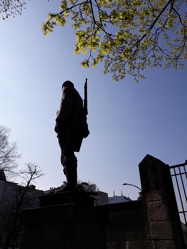 Figurę, którą widzę zanim jeszcze wejdę przez skrzypiącą bramkę, otacza mgiełka kontrowersji. Lokalnej i niezbyt ostatecznie znaczącej, ale jednak — kontrowersji. Mnie natomiast otacza ten specyficzny zapach spotykany jedynie w ogrodach zoologicznych, gdyż w latach powojennych ktoś podjął decyzję, aby takowy zbudować po drugiej stronie szosy, vis a vis z cmentarzem poległych w Pierwszej Wojnie Światowej. Gdy wejdę w głąb kompleksu, zastąpi go ciężki zapach gęstego lasu, otaczającego ze wszystkich stron der Ehrenfriedhof Kaiserberg.
