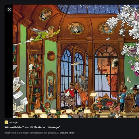 Ewa Maria Slaska (już było, rebloguję sama siebie): Synteza biblioteki, Ulli Oesterle (Don Kichot w lewym górnym rogu, powiększenie – poniżej)